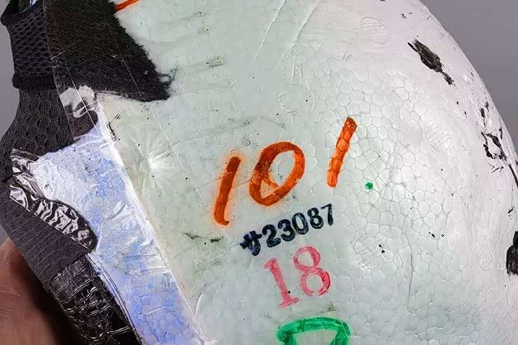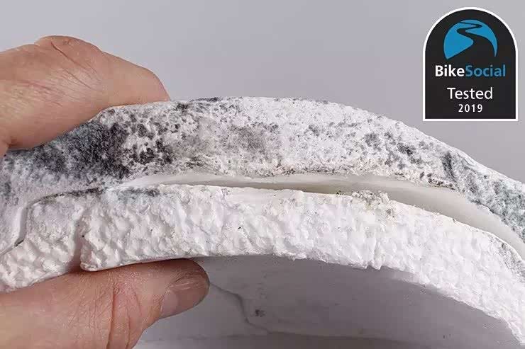 这种柔软的外壳,是典型的发泡聚苯乙烯,在不同的头盔上,也有很大的不同。看起来比较简单的就是单片式衬垫,头顶部分较为柔软,背部有通道,两部分密度不同,也将影响测试期间力的传递。