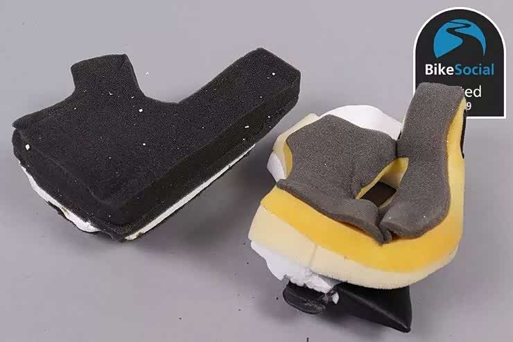 因为复合纤维树脂的外壳非常坚固,内部应该更加柔软,增加头盔的舒适度,并有效减少对头部的伤害。而所有在英国和欧洲销售的头盔,都需要经过ECE 22.05标准。Arai使用了单一的衬垫,不同部分的密度结构也完全不同,当然,这样的制造成本更高。