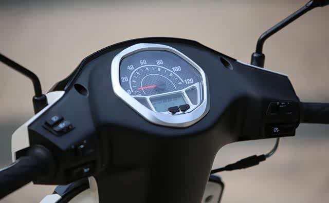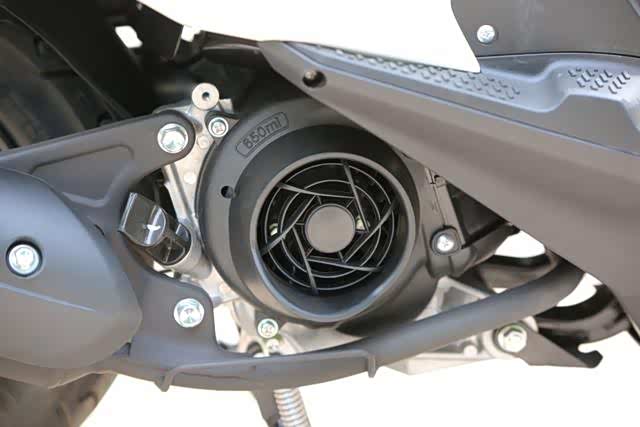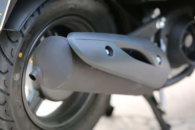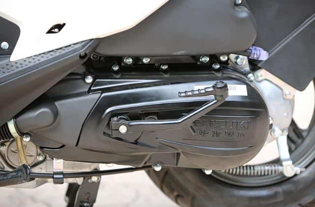 看到这个标识,咱们就得说说这台车的动力了,let's小海豚使用了一台单缸风冷发动机,最大排量为112.8mL,最大功率为6.5kW,峰值扭矩为9N·m。跟大哥车型UU125、UY125使用了相同的油泵、三菱8孔喷油嘴,搭配着最新研发的电喷系统,可靠性非常不错。