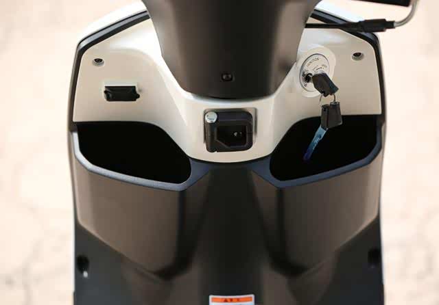 let's小海豚的储物空间绝对是一大亮点,这台车完全把空间进行了最大化利用,开放式储物箱、折叠式挂钩、脚踏板面积也进一步的扩大,座位内部储物空间也算是不错,可以放些贵重物品,日常出行是绝对没有任何问题。值得一提的是这台车还加入了USB充电接口,让手机续航得到了最大化保证。