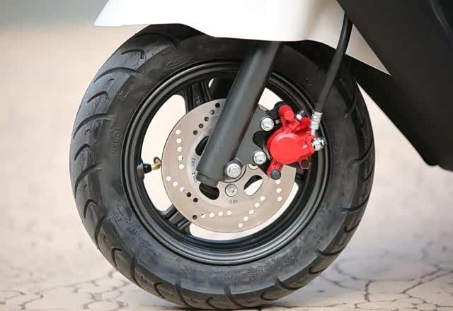 let's小海豚的减震配置还算是不错,使用了正立式前叉加侧置单后减震组合设计,前轮规格为90-90 R10,而后轮规格变成了100-90 R10,刹车使用了前碟后鼓设计,设计的算是中规中矩,没啥太大亮点,但是也完全没有任何短板,实用性非常强。