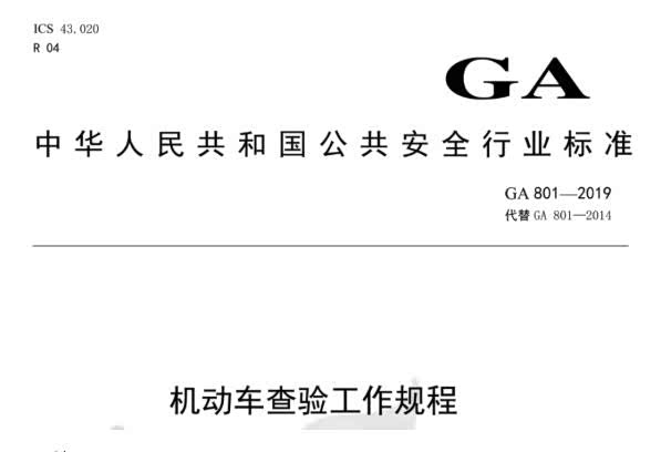 而在此之后,公安部又于2019年《中华人民共和国公共安全标准》GA- 801-2019文件中详细提及了全新机动车查验工作流程,并已开始实施。