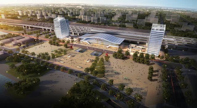 目前已经完成主体搭建的高铁站站房位于枢纽站的东侧,整个站房建筑面积11000平方米,主体分为二层,其中售票、候车、检票主要集中在地面一层,二层中部设有一个候车大厅。而站前广场位于站房的西侧,广场总面积为3.4万平方米,其中地下一层为大型停车场,地下二层为预留地铁车站。