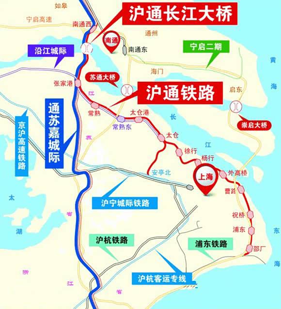 沪通铁路、南沿江城际铁路和通苏嘉甬铁路开通后,张家港至上海仅需约25分钟、至苏州约20分、至南京约40分钟、至南通约10分钟,上海“半小时通勤圈”将加入一个新成员。
