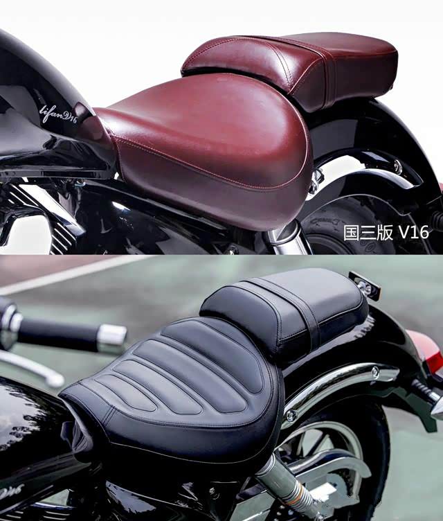 其三:舒适性,坐垫升级。国四版力帆V16采用分体式坐垫设计,并且采用花纹设计,前后包围设计,还是十分舒适的。另外,在坐垫材质上采用的合成革,比较环保。坐垫内部采用高密度复合海绵,不易起皱,不易变形。外观造型上与老款相同,空间比较宽大,可以满足两人骑行。