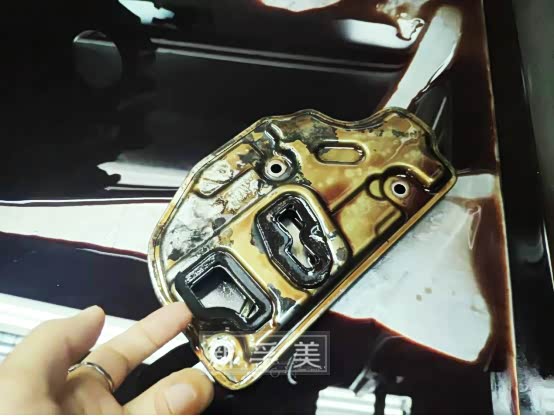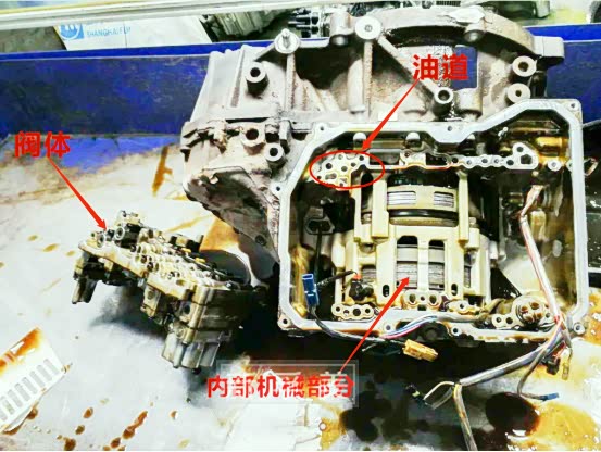 这是拆解阀体后的照片。阀体是该车控制模块,拆解阀体后可以隐约看到里面离合器状况,但是看的并不明白,想看里面摩擦片有没有磨损还需要更近一步拆解。