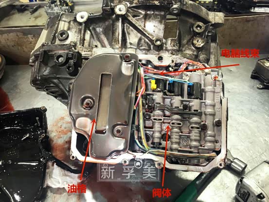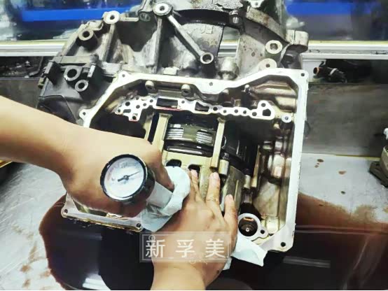 给变速箱打压测试,看看箱体内部有没有泄压。这款变速箱活塞经常老化封不住油压导致变速箱打滑。