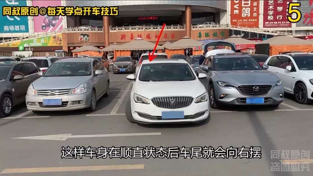 这样车身在顺直状态后车尾就会向右摆,随着车身摆斜,车尾也在向右侧库边线靠近,此时车身已经处于向左摆斜状态,