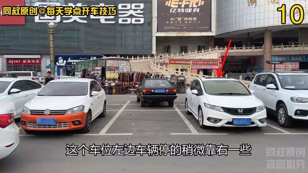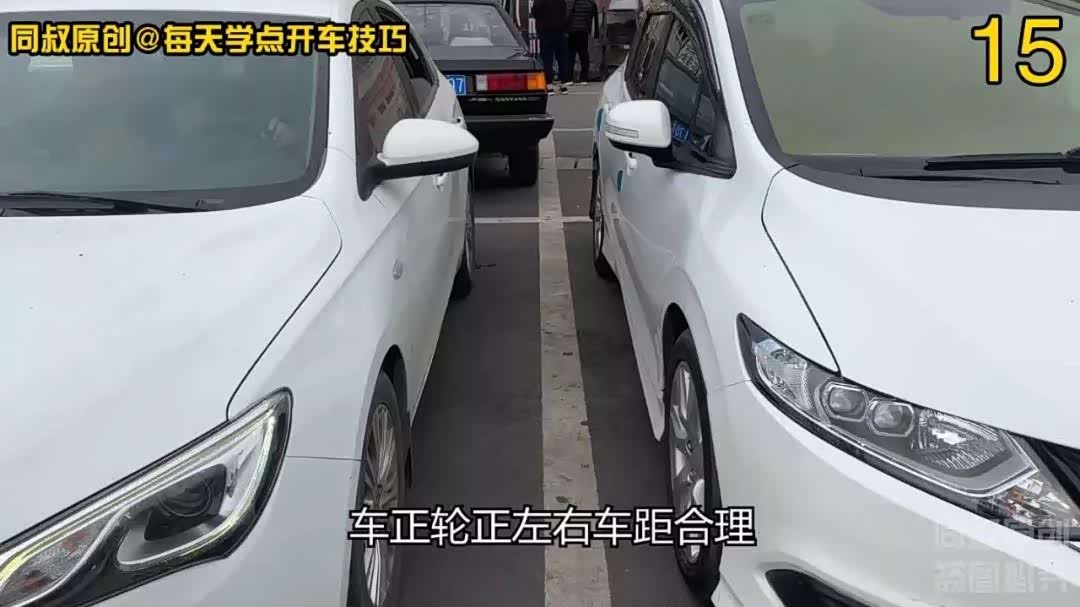 停车后看到车身略微靠右一点点,因为左右两边车辆都靠右,这样两边车身距离两车基本都是等距离的。