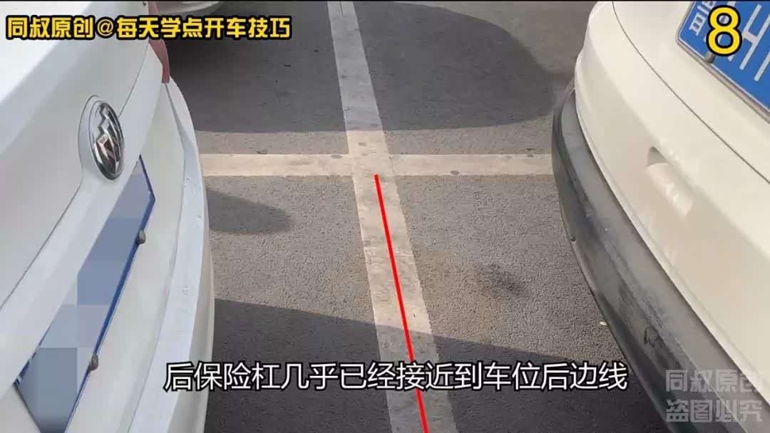 这些调整动作做完以后,后保险杠几乎已经接近到车位后边线,