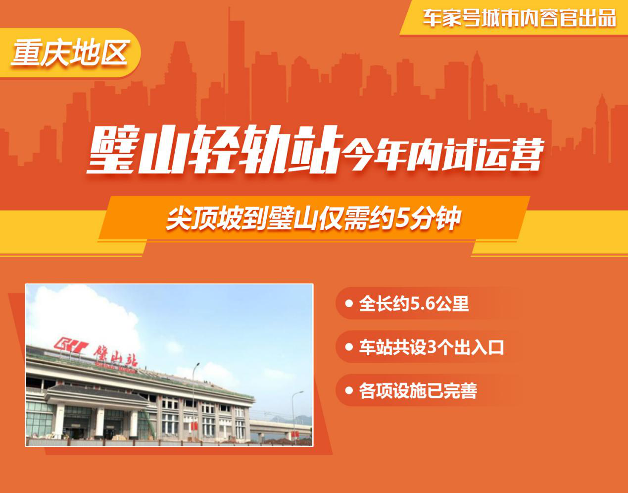 据了解,轨道交通1号线延长线尖顶坡至璧山段起于1号线尖顶坡站,止于璧山站,设车站一座,全长约5.6公里。待轨道交通尖璧段正式建成通车后,从尖顶坡到璧山仅需约5分钟。