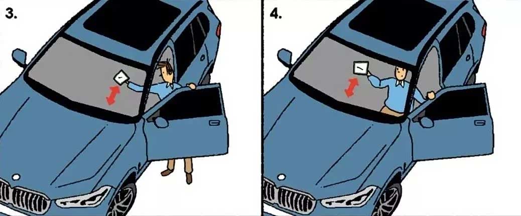 3.从外面通过敞开的车门尽可能多地清洁挡风玻璃。