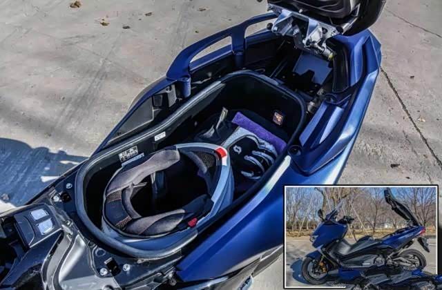 储物方面,这款车的后备箱采用前开设计,因为是前置油箱,所以空间还是比较大的,可以容纳一顶全盔和一些日常杂物。感觉不够的话可以加装后尾箱。