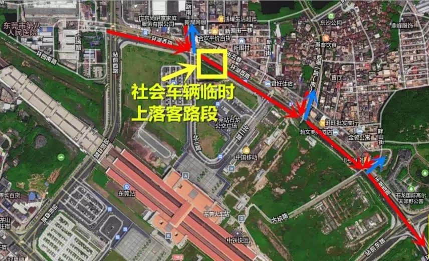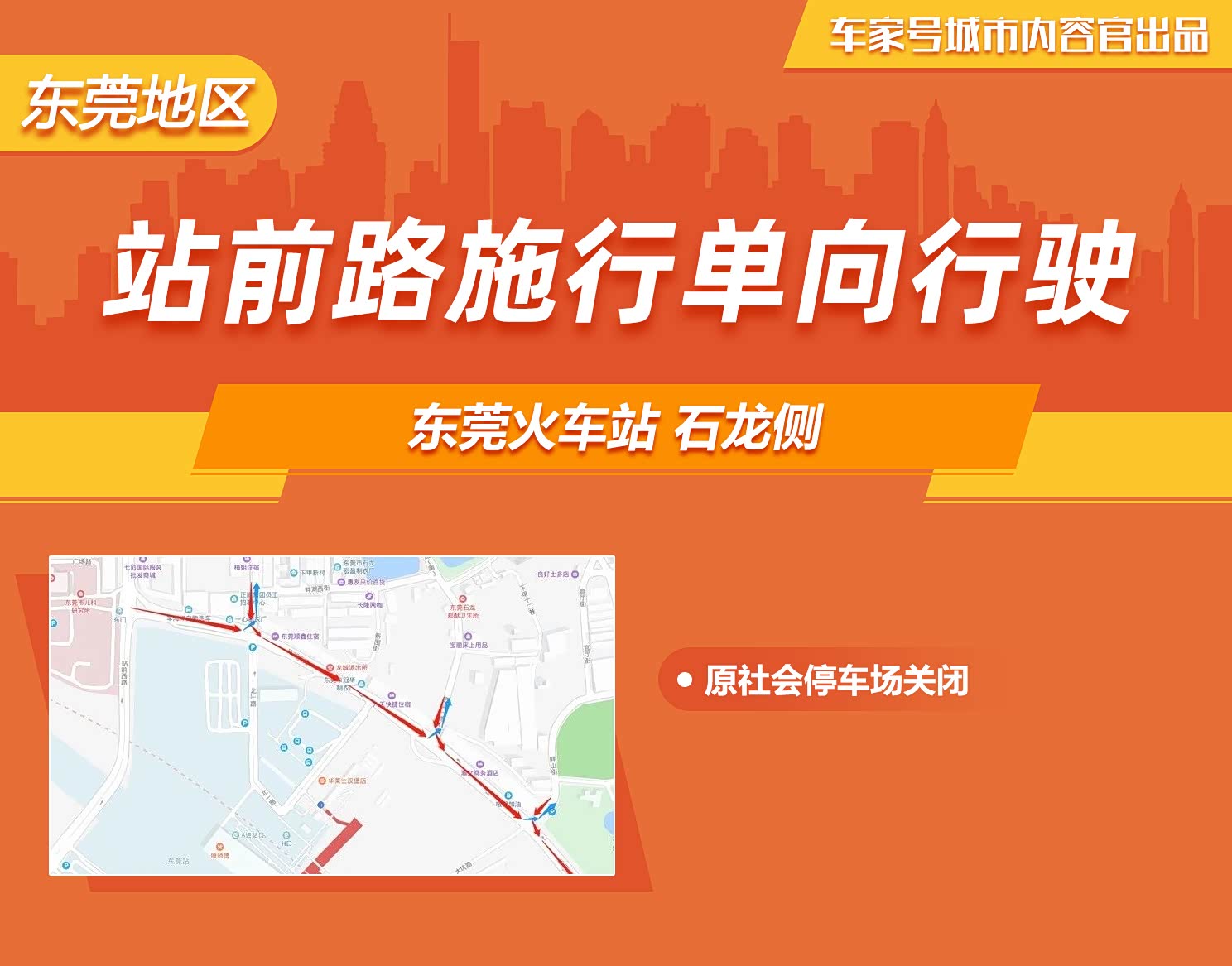 为配合市政府对东莞火车站TOD轨道站点公共配套设施建设及周边土地开发利用,受工程影响,东莞火车站(石龙一侧)原社会停车场目前已经关闭,站前路段——环湖西路实施“单线行车”。