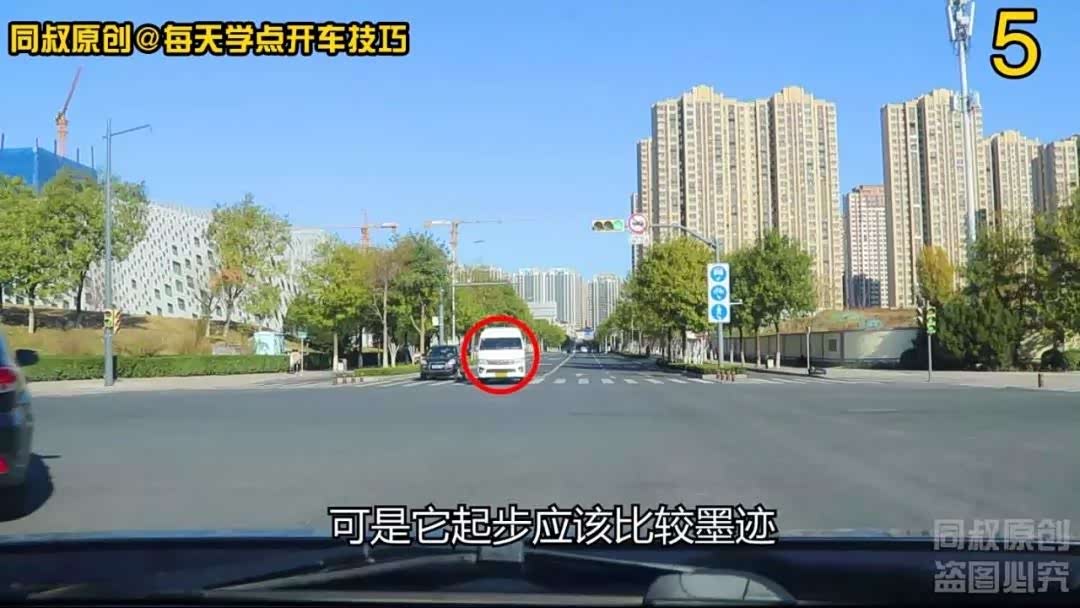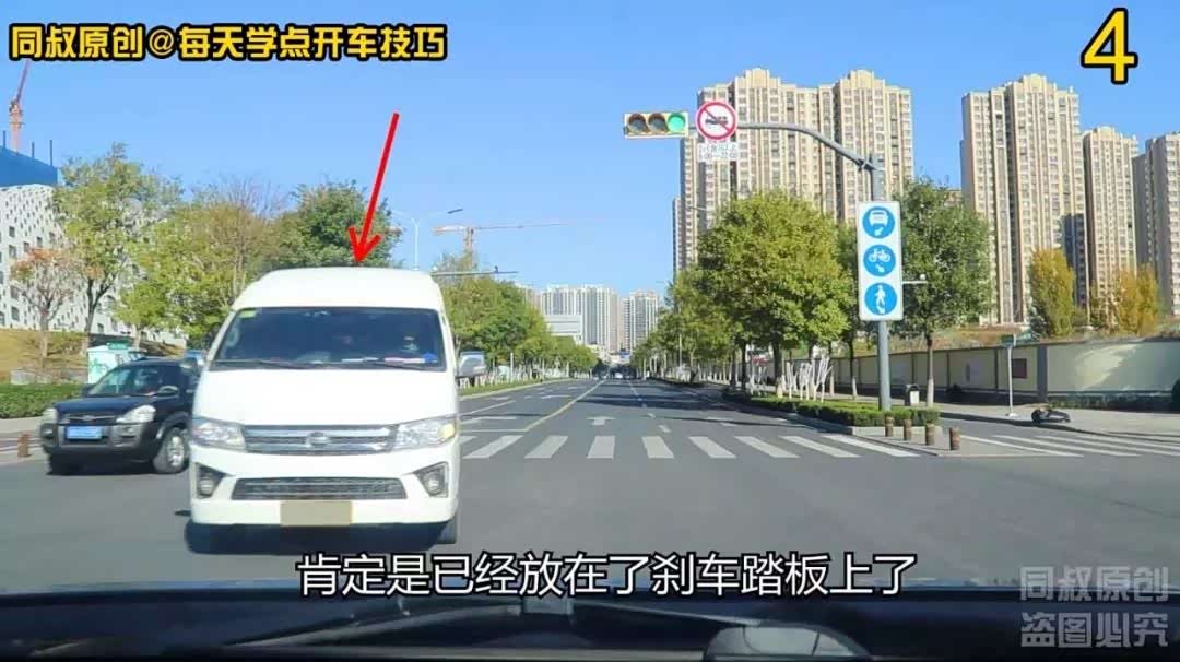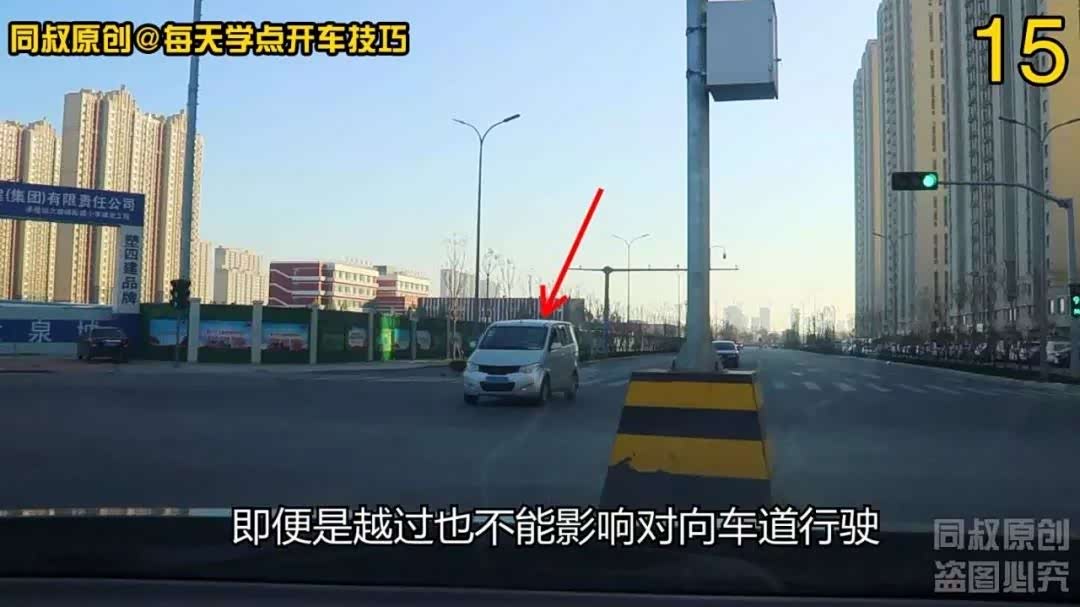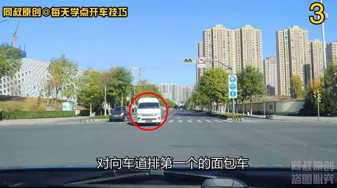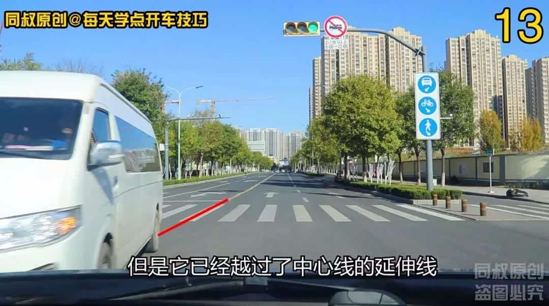 第一个场景,白色面包车虽然没有完成左转弯,但是它已经越过了中心线的延伸线,事实上已经影响到了我的正常直行。没有发生事故,但可能造成拥堵,如果发生相撞,那就是面包车责任。有经验的老司机总是不用自己掏钱修保险杠,就是在这种情况下直行时与左转车辆相撞,而让对方全款给自己换保险杠的;