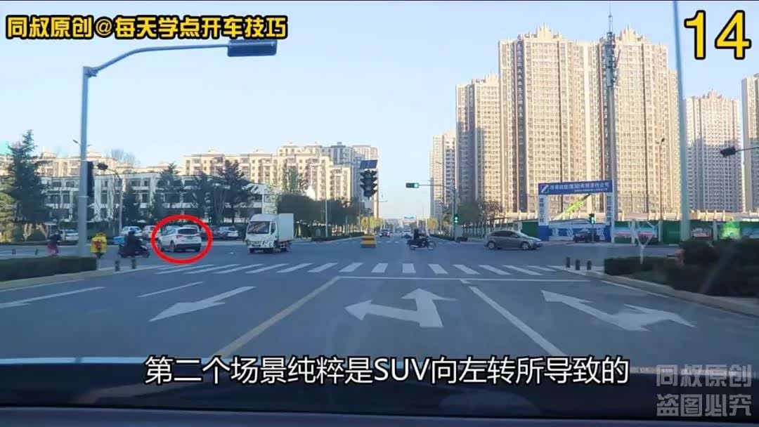 第二个场景纯粹是SUV向左转所导致的,在道路上这样开车的司机是最多见的,明明对向直行车辆已经开过来了,但是还是抢道左转抱有侥幸心理,认为对方不会撞你。其实对向车辆是没想撞你,但是把自己的安全寄托于对向车辆,何况还是一个撞了也不会负责任的车辆,这是一个最糊涂的做法,因为suv这样抢行抢拐,也很容易撞到人行道上的行人和非机动车;