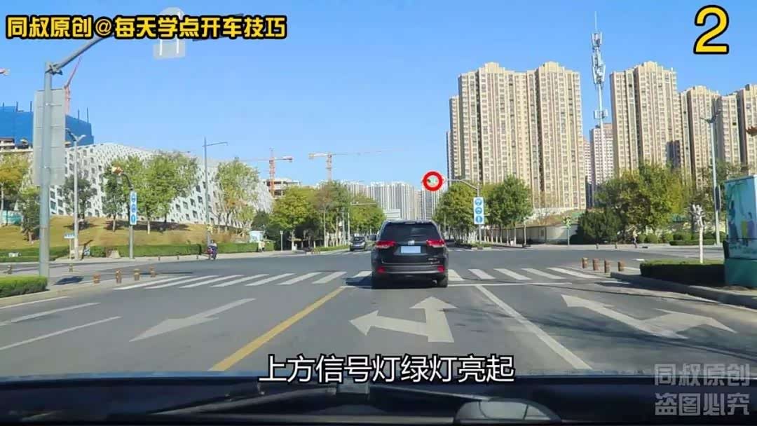 就在即将停车时,上方信号灯绿灯亮起,前车快速起步左转弯,我随即松了一下刹车,让车辆保持慢行,待前车左转完毕后点油门提速过路口。