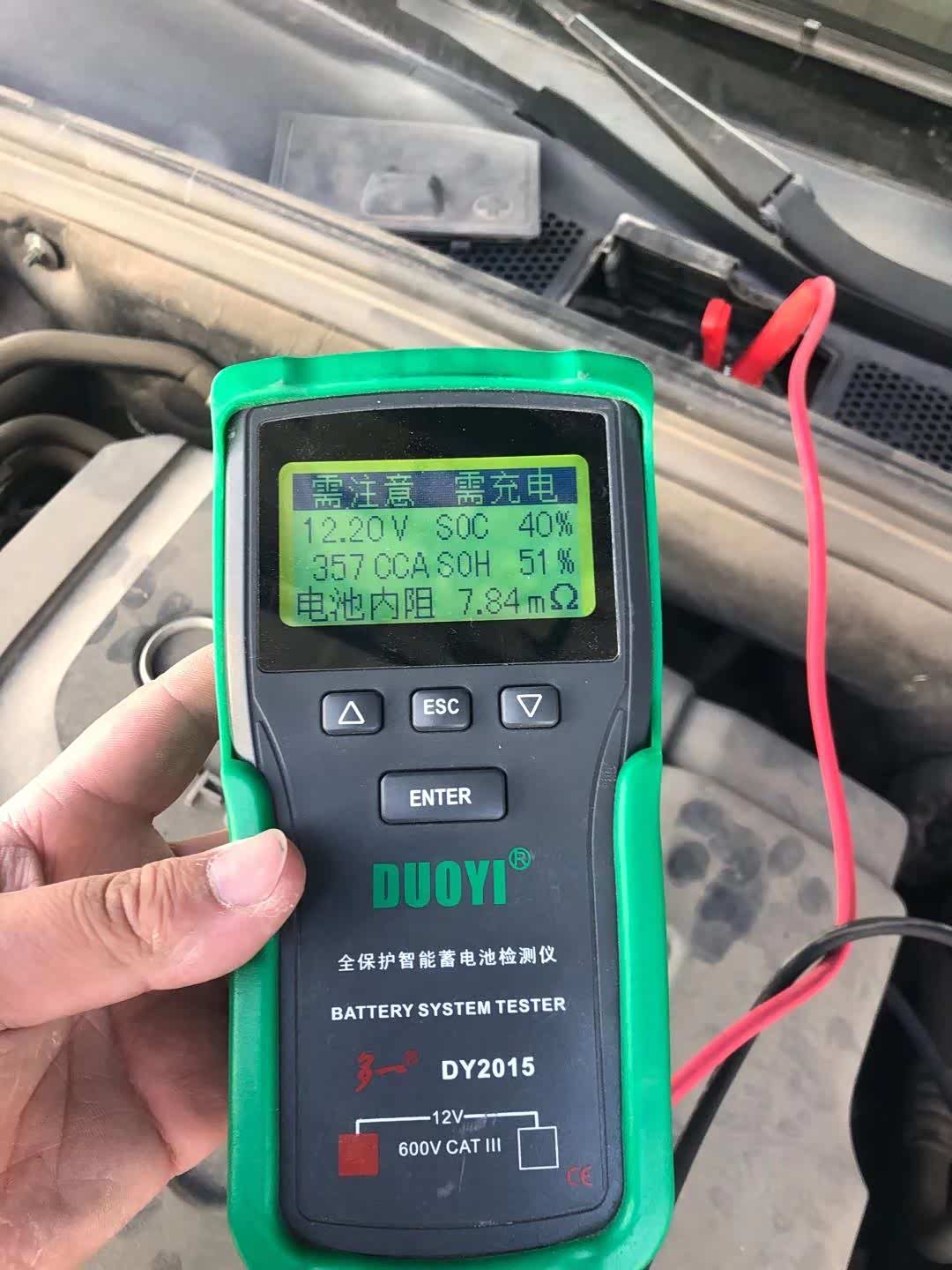 电瓶检测仪检测结果为电瓶需要更换,电瓶目前存在亏电,但是拿钥匙多次点火均能正常启动,寿命剩余百分之51,还可以继续使用。
