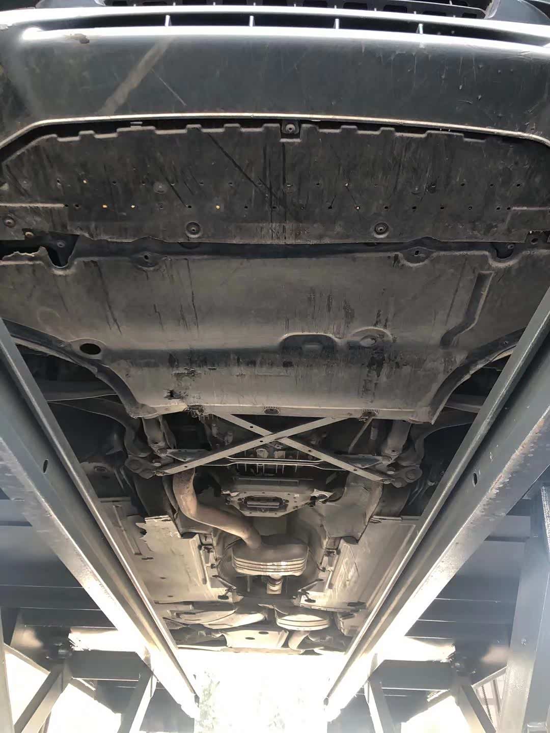 路试完之后就直接开到了4S店售后的举升机旁,在停车时电子手刹拉起会有异响,建议给电子手刹拉线润滑一下。车子缓慢抬起来后,车身底盘看上去不是一般人想象中德系车漏油那样,这辆A4L的底盘看上去整体还是比较规整,没有明显的漏油现象,看到这儿肯定会有网友疑问:难道这是一辆假的大众?8年车龄居然不漏油!