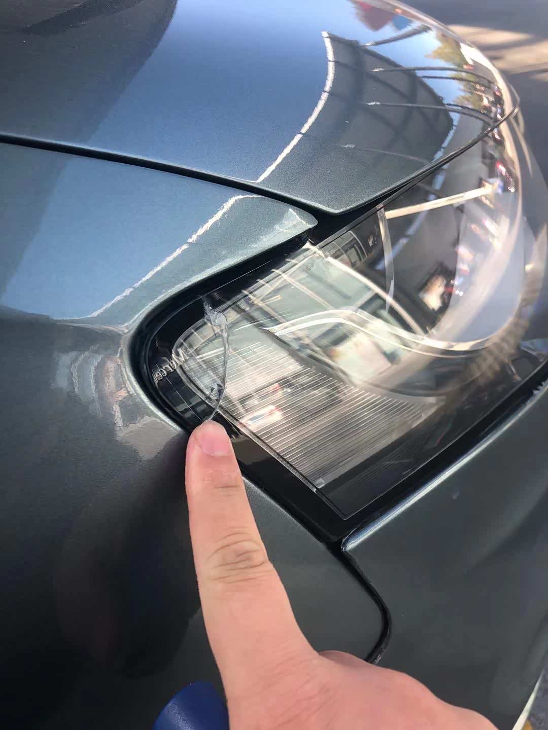检测之前先对外观进行一圈基本的检测了解一下大概的情况,结果发现右前的大灯外罩是裂的,而且底部还有一些飞漆。毋庸置疑这个前杠是喷过漆的,而且右前叶子板也怀疑有修复过。