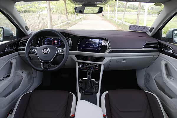 内饰上,全新速腾同样采用了大众最新的设计风格,中控布局与全新一代宝来、探歌等车型如出一辙,中控台中央向驾驶员一侧环抱,仪表台运用了较多钢琴烤漆面板和镀铬装饰,搭配整体深砖红+米色的双色调主题配色,沉稳而不失时尚。