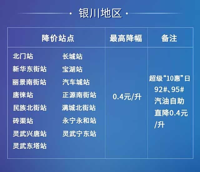 银川地区成品油优惠0.4元/L,仅限每月逢“十”当日