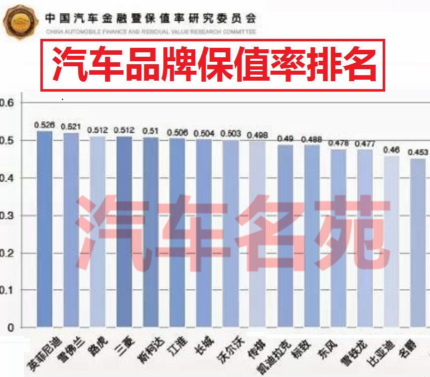 中保研发布的国内汽车品牌保值率排行榜当中,排名后十五的品牌依次是英菲尼迪、雪佛兰、路虎、三菱、斯柯达、江淮、长城、沃尔沃、传祺、凯迪拉克、标致、东风、雪铁龙、比亚迪和名爵。