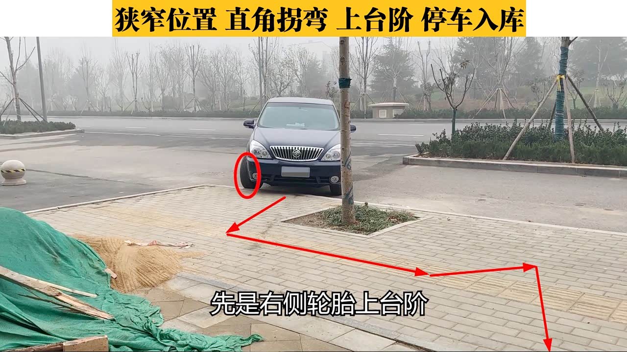 好的,路边上台阶狭窄位置,两次直角拐弯停车完成。