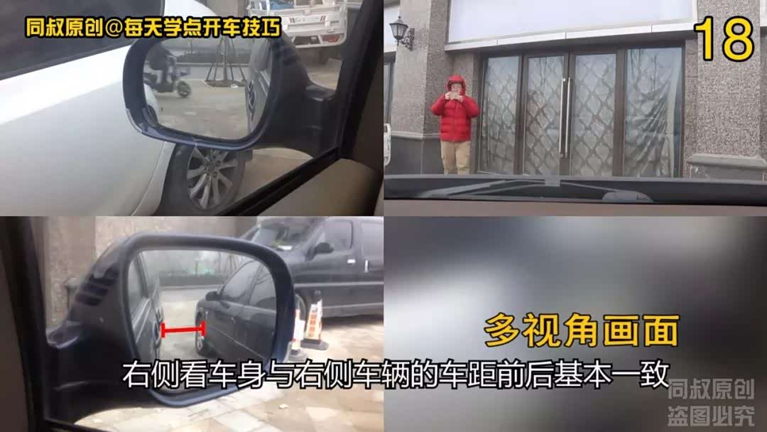 如果看不到前大灯,可能两车就会刮蹭了。车头继续往右画弧线,此时观察右后视镜,注意右后侧车身入位时与右侧车辆的距离,防止刮蹭。然后交替观察左右后视镜,右侧看车身与右侧车辆的车距前后基本一致,