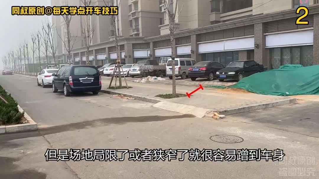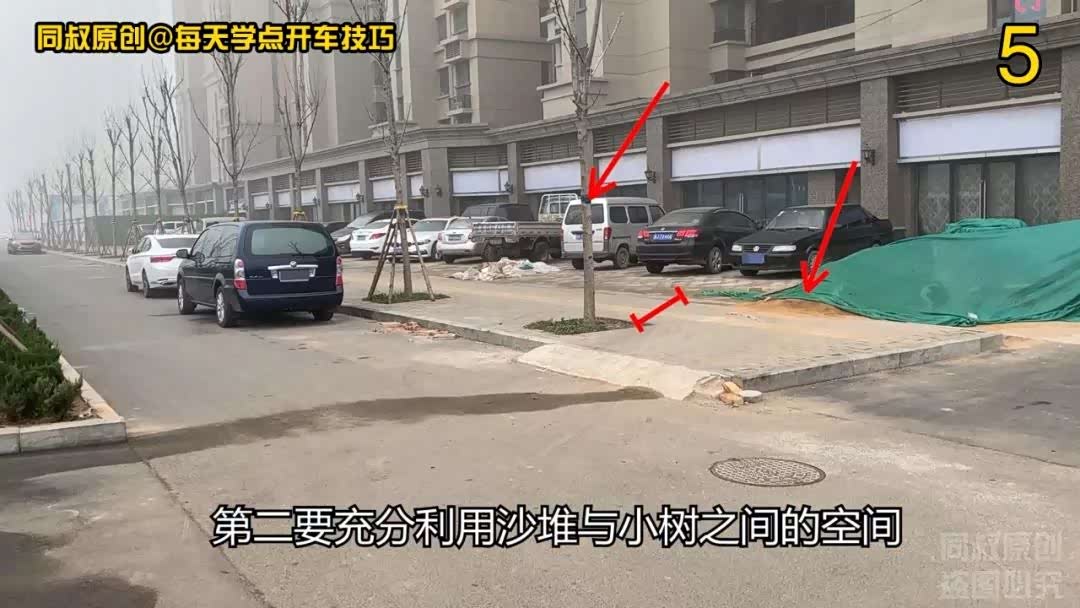 此时距离小树还有一段距离,所以不用担心车头蹭到小树。