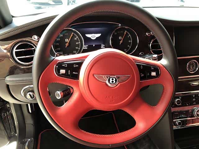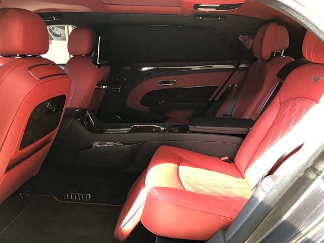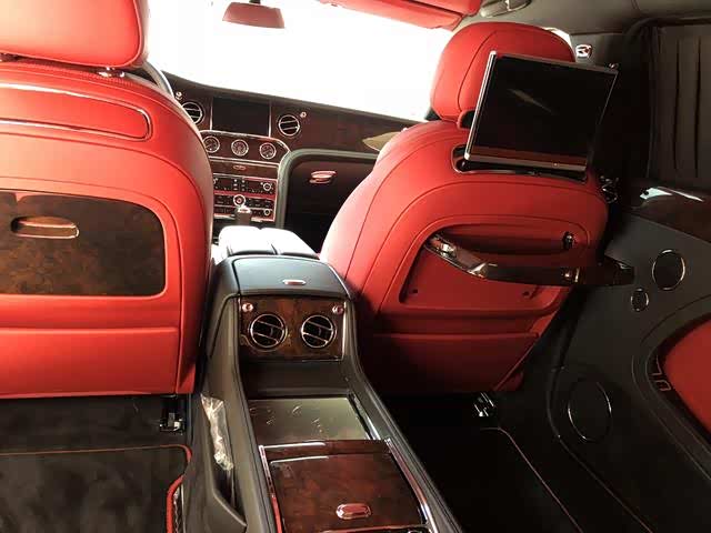 选置:穆勒包(21寸轮毂,车门带穆勒字样门槛嵌饰板,铸币式表面车门把手,前后排羊毛地毯,宾利徽章头枕刺绣, 后侧化妆镜饰面环绕),优选包(金色飞翼小人,宝石机油燃油盖,遥控车库门开启装置,两把雨伞,泊车钥匙),舒适包长轴距版(航空躺椅,座椅通风按摩,舒适型头枕,阿尔卡塔纳鹿皮头枕靠垫),暗色伯尔核桃木实木饰条,全尺寸中控台配两个可活动小桌板,后排小桌板,内饰情绪灯,6碟播放器,宾利影院——双10.4寸自动折叠平板电脑带地图等等