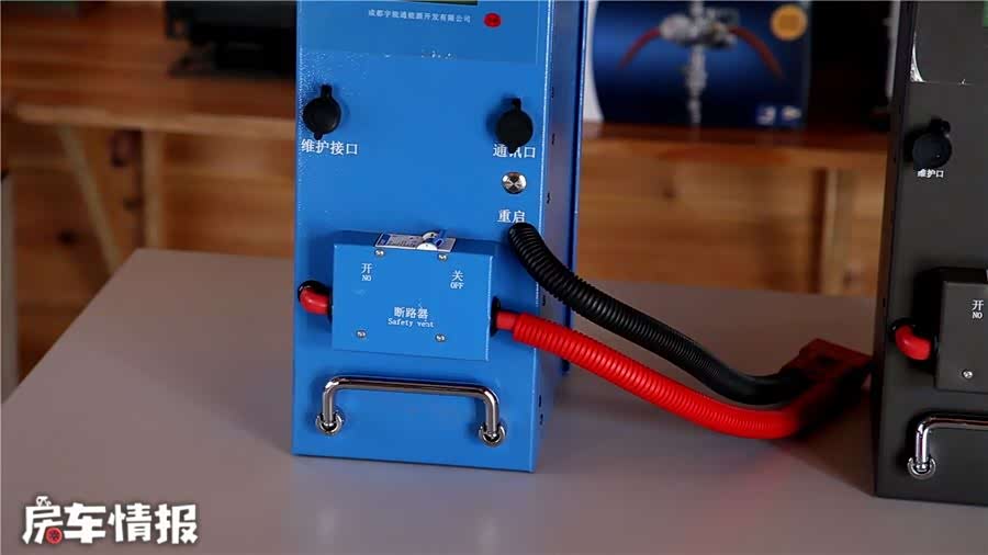 说到电力系统,大家一定首先想到电池。作为房车中使用频率最高的设备,电池扮演着重要角色。先来说一下电池的分类,市面上房车常用的电池有:铅酸电池(免维护电瓶)、磷酸铁锂电池、石墨烯电池等。在这些电池当中,铅酸电池使用寿命短且比能低,优点是价格低廉。磷酸铁锂电池最大的优点是安全稳定,无记忆效应能够长时间稳定工作,价格也比较适中(平均20元/Ah)。而石墨烯电池则是比较新的概念,厂家宣传在磷酸铁锂电池中加入导电性能好的石墨烯材料,从而提高电池性能。但由于石墨烯材料的稀有性,石墨烯电池的价格也是水涨船高(平均36元/Ah)。值得注意的是温度对于电池有不小的影响,厂商会在电池制造过程中加入一定的保温抗寒材料。虽然价格稍有增加,但电池在低温环境下也能稳定工作,寒冷地区的车友需要考虑。(低温版磷酸铁锂电池平均23元/Ah)