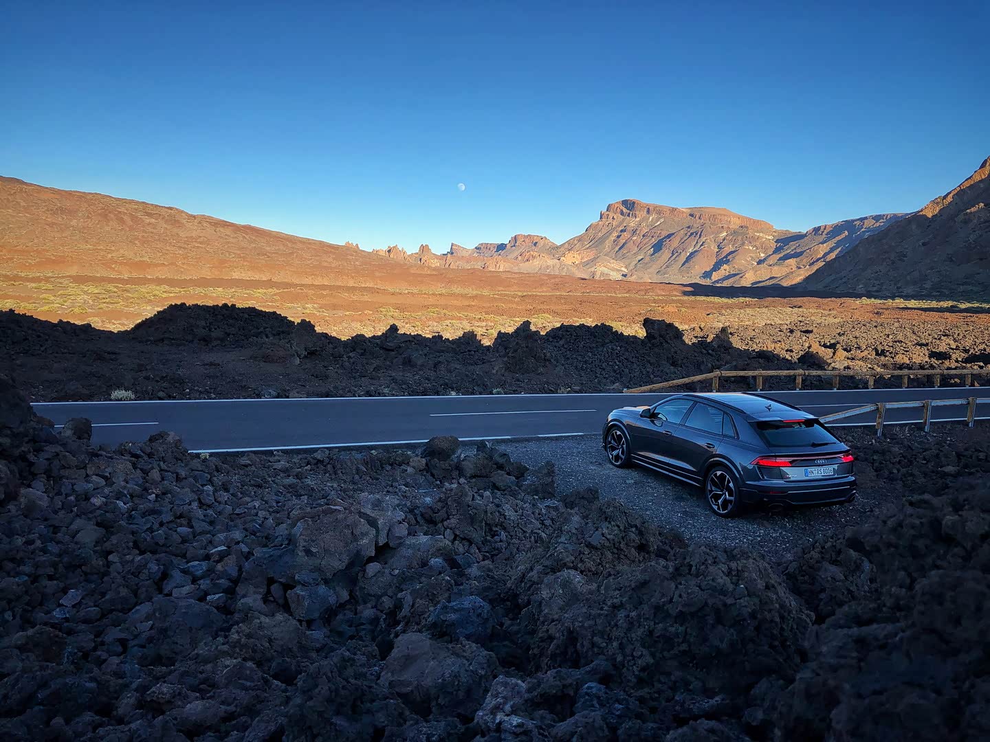 一座海岛,一座火山,欧洲领土,地处北非,一辆猛兽,0海拔的海岸出发,一路轰鸣,拔上2200m的火山,一天经历四季,一天环岛旅行。试驾目前纽北的最快量产SUV奥迪RSQ8的方式就是如此与众不同,这是MLB EVO平台的最新力作,4.0T大V8,441kW(600匹),800N·m扭矩,48V技术的全面应用,电控主动防倾杆+动力补偿,当然,需要再次强调,它是当前纽北最速量产SUV。