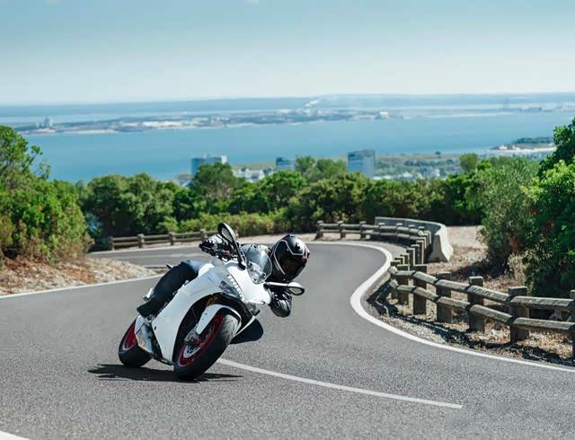 先说Supersport,它分为两个版本,分别是Supersport 和Supersport S。作为杜卡迪超级运动跑车的标杆,外观上倾向于我们常见的跑车设计,视觉紧凑而轻巧,但在坐姿上比较中庸,无论是手把高度还是脚踏位置,都会让骑行者身体相对直立,更偏向于街车的骑行姿态。