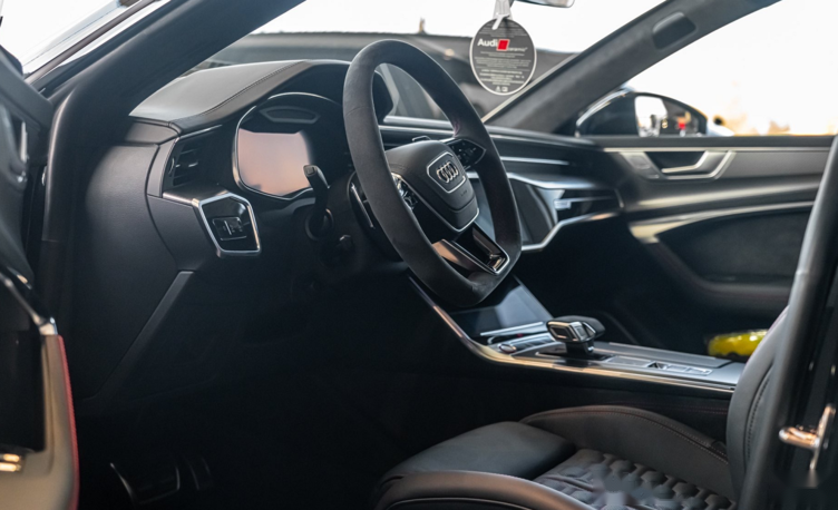 在内饰设计方面,全新奥迪RS7 Sportback采用最新家族设计风格,在细节中加入一些碳纤维以及红色缝线元素,提升整体内饰氛围。搭载的平底式三辐式运动方向盘握手处均被翻毛皮包裹,车内三屏的设计非常有科技感。