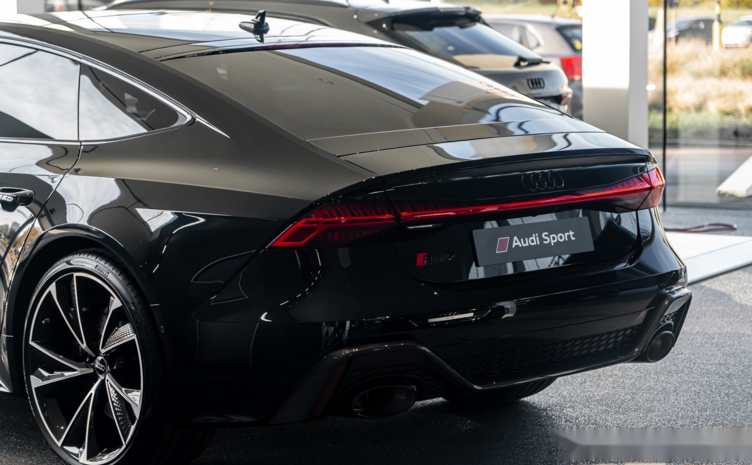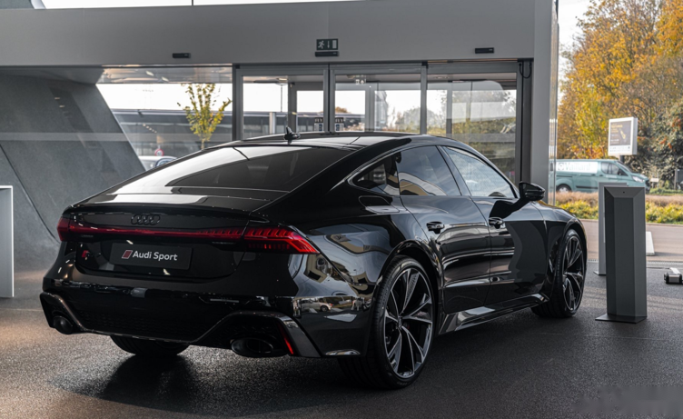 从车身侧面来看,造型和全新A7保持一致,溜背造型一直是新车的亮点所在。汽车尾部采用采用贯穿式的OLED尾灯格外醒目,双边共双出椭圆形排气,下包围采用碳纤维+亮黑饰板的搭配,营造出十分激进的视觉效果。