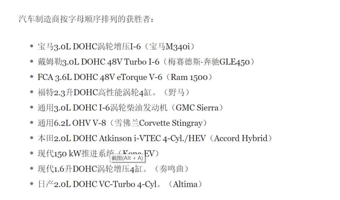 沃德十佳发动机简介及评选规则