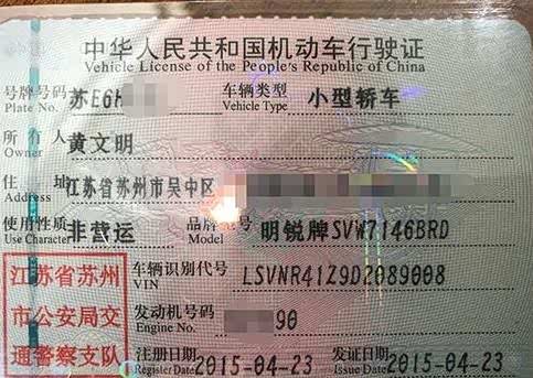 5、车辆登记证书