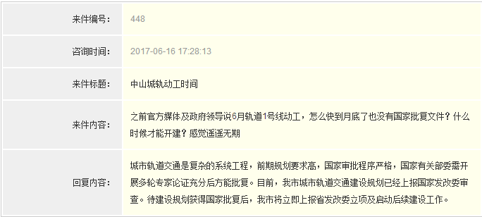 正如中山发改委对关心中山发展建设市民的回复:“城市轨道交通是复杂的系统工程,前期规划要求高,国家审批程序严格,国家有关部委需开展多轮专家论证充分后方能批复。目前,我市城市轨道交通建设规划已经上报国家发改委审查。待建设规划获得国家批复后,我市将立即上报省发改委立项及启动后续建设工作。”