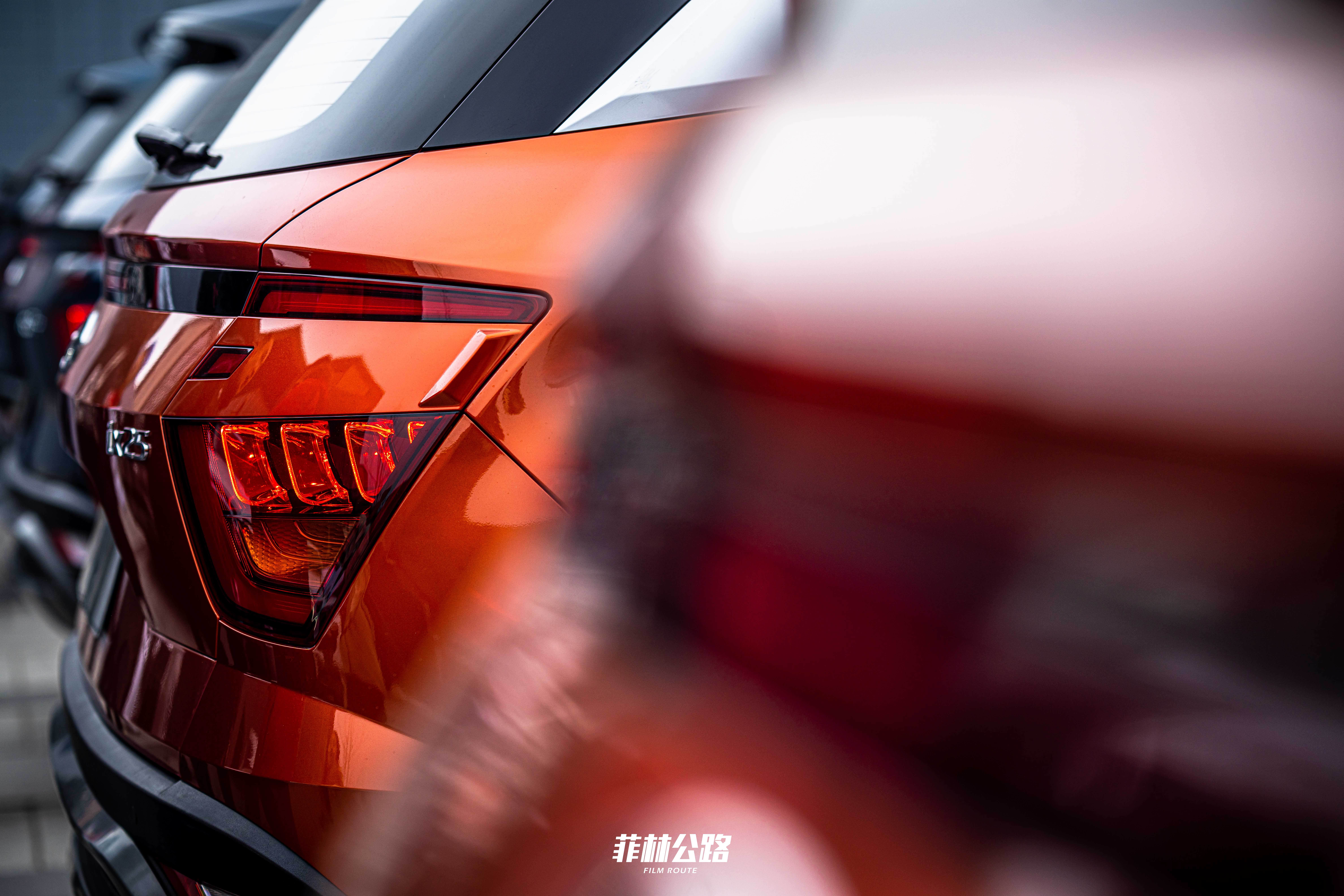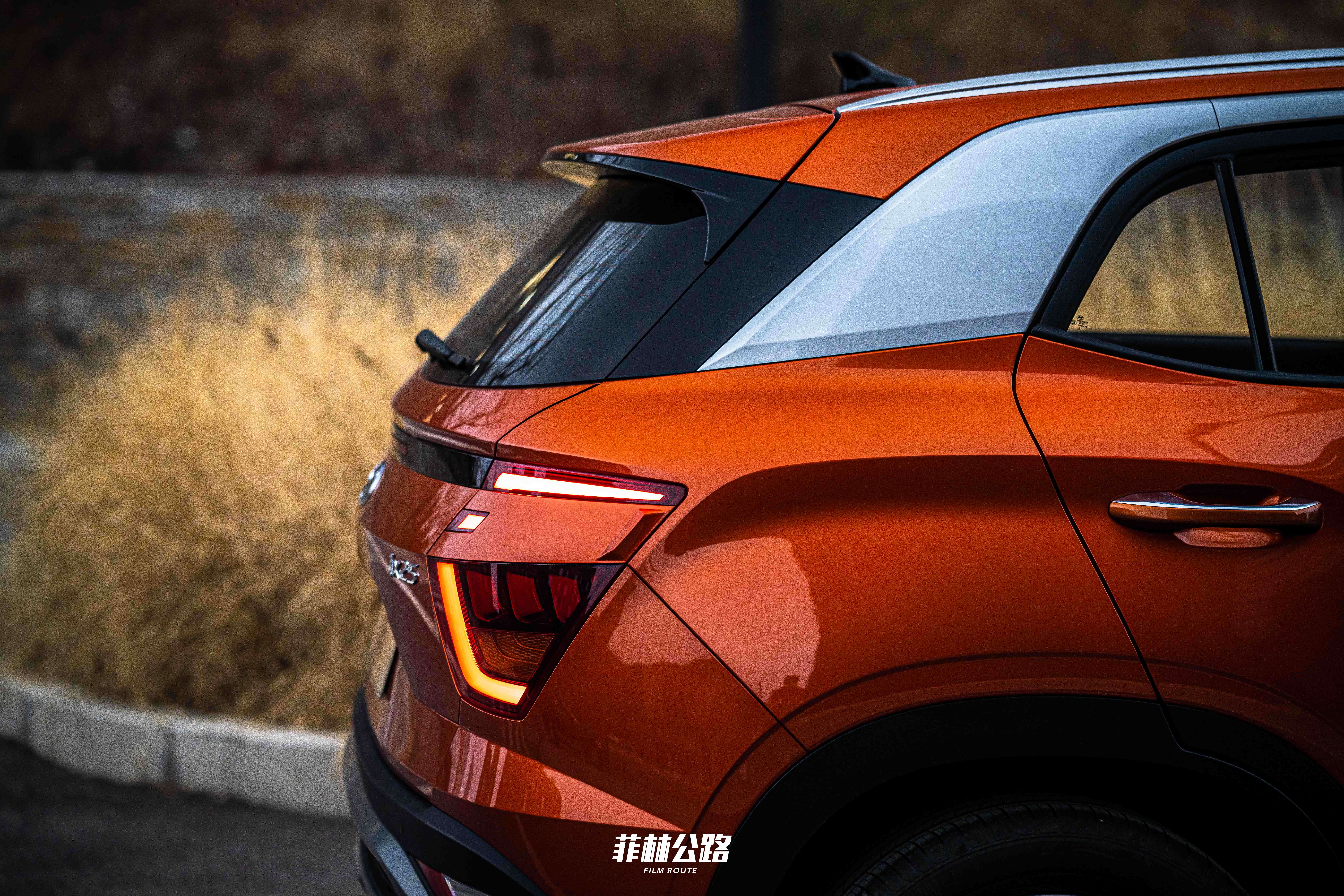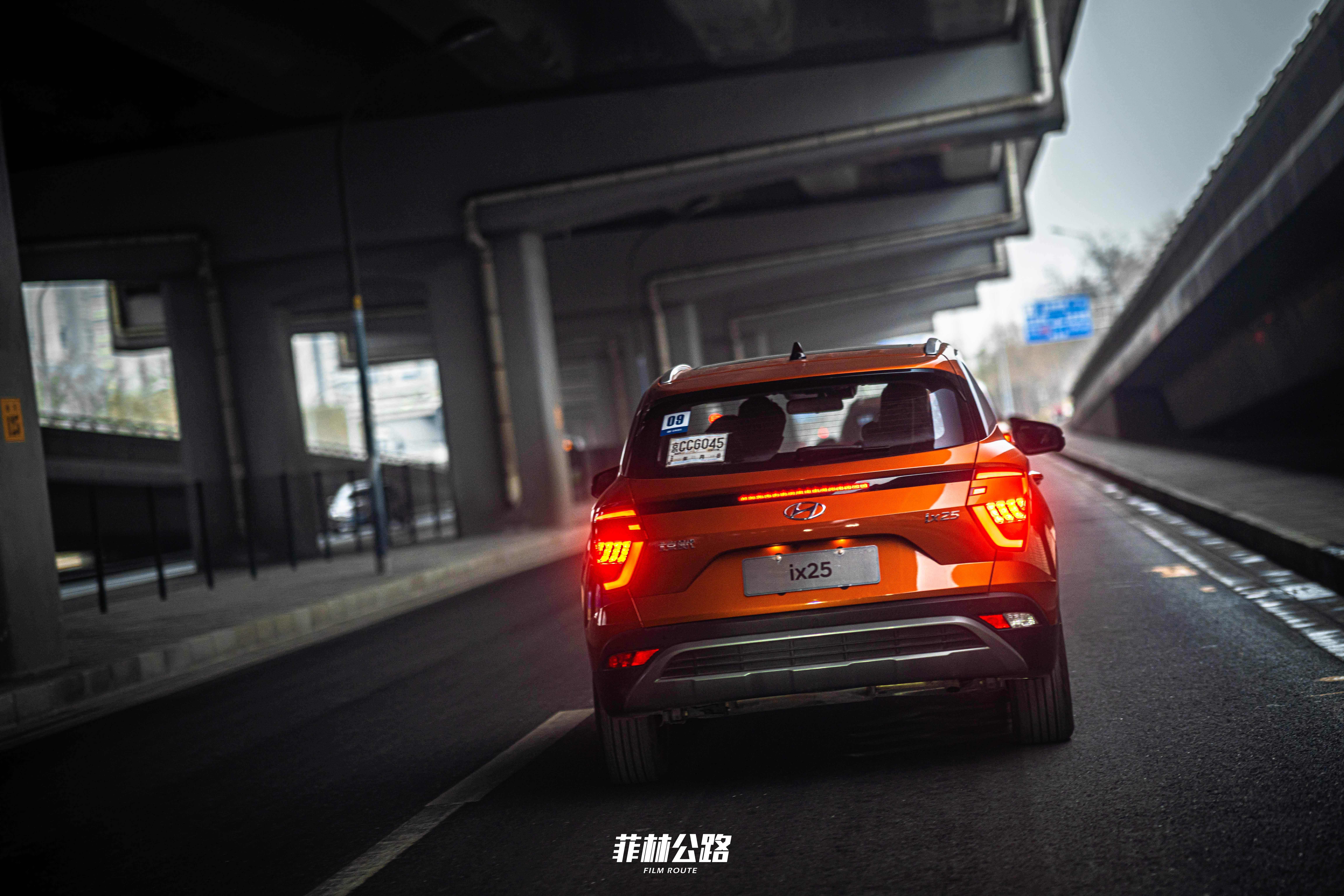 当流体雕塑理念衍生至风暴前沿,再进化至Sensuous Sportiness(感性运动),巨大的对角“C”字形中网与眯缝成一条线的分体式大灯共同构建了新一代ix 25的面部标签。黑色的A柱和C柱很好地承托了悬浮式车顶,但银色的装饰板又进一步拉低了车顶的视觉高度。