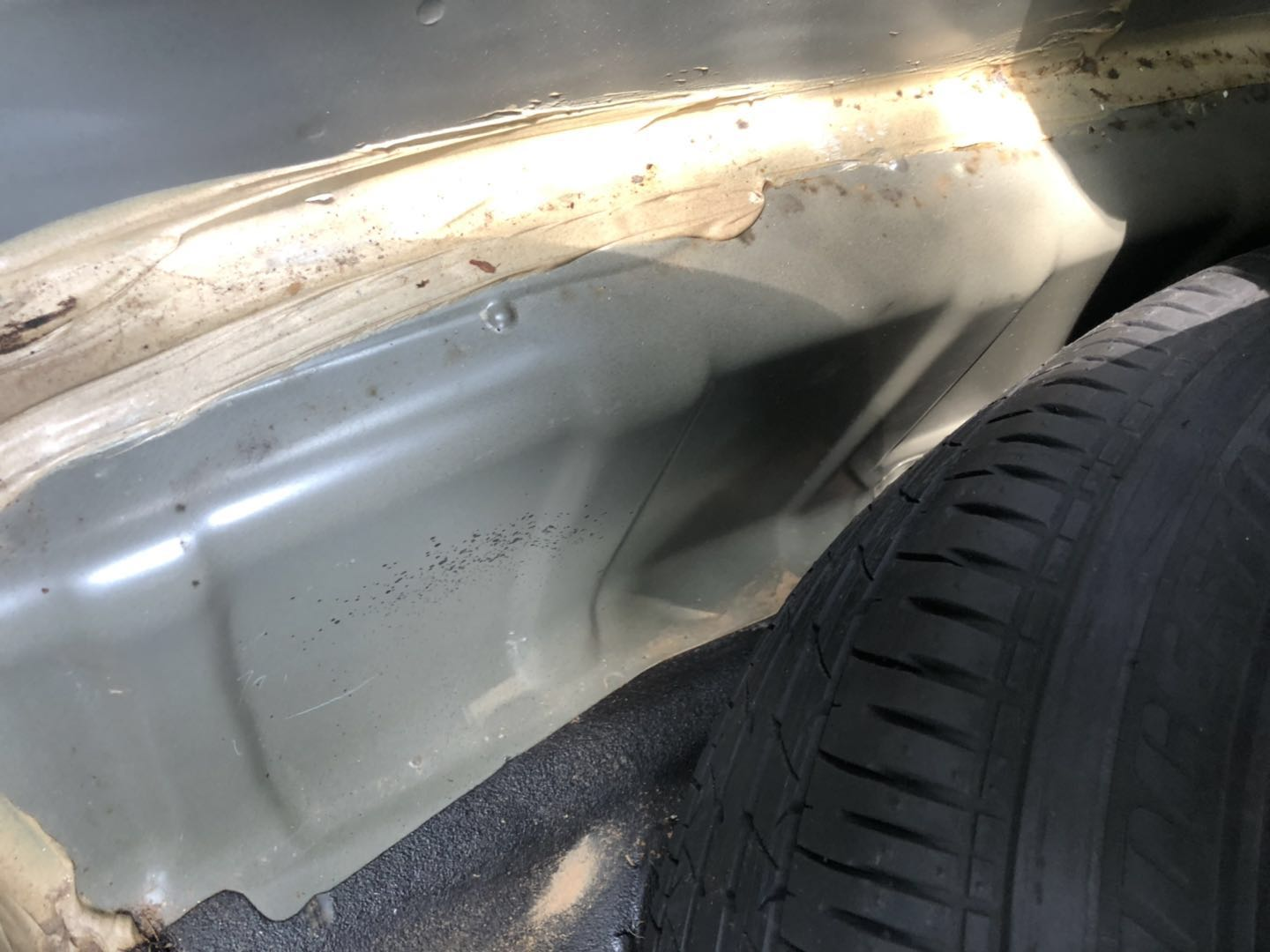后备箱检测到饰板固定卡扣缺失,有明显拆卸的情况,掀开隔板,可以看到后围板和后底板完好无损,密封胶也没有重新涂抹的痕迹,左右两侧后翼子板内衬也都正常,可以排除车辆后方有严重碰撞事故的嫌疑。