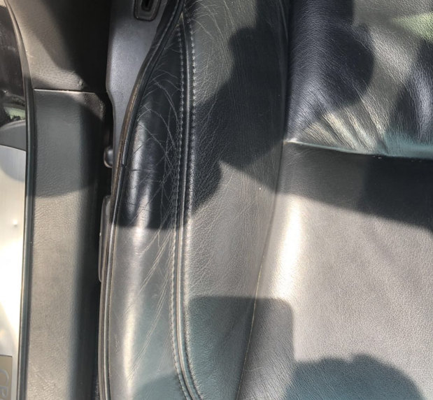 通过对方向盘、座椅和踏板等常用磨损件的仔细检测,其磨损程度基本在正常(表显里程131412Km)范围之内,可以排除有调表的嫌疑。此外,这辆车还加装有行车记录仪,副驾驶安全带饰板破损,主驾驶座椅调节异响等问题需要进行检修,看完前排,我们再看看后排的情况。