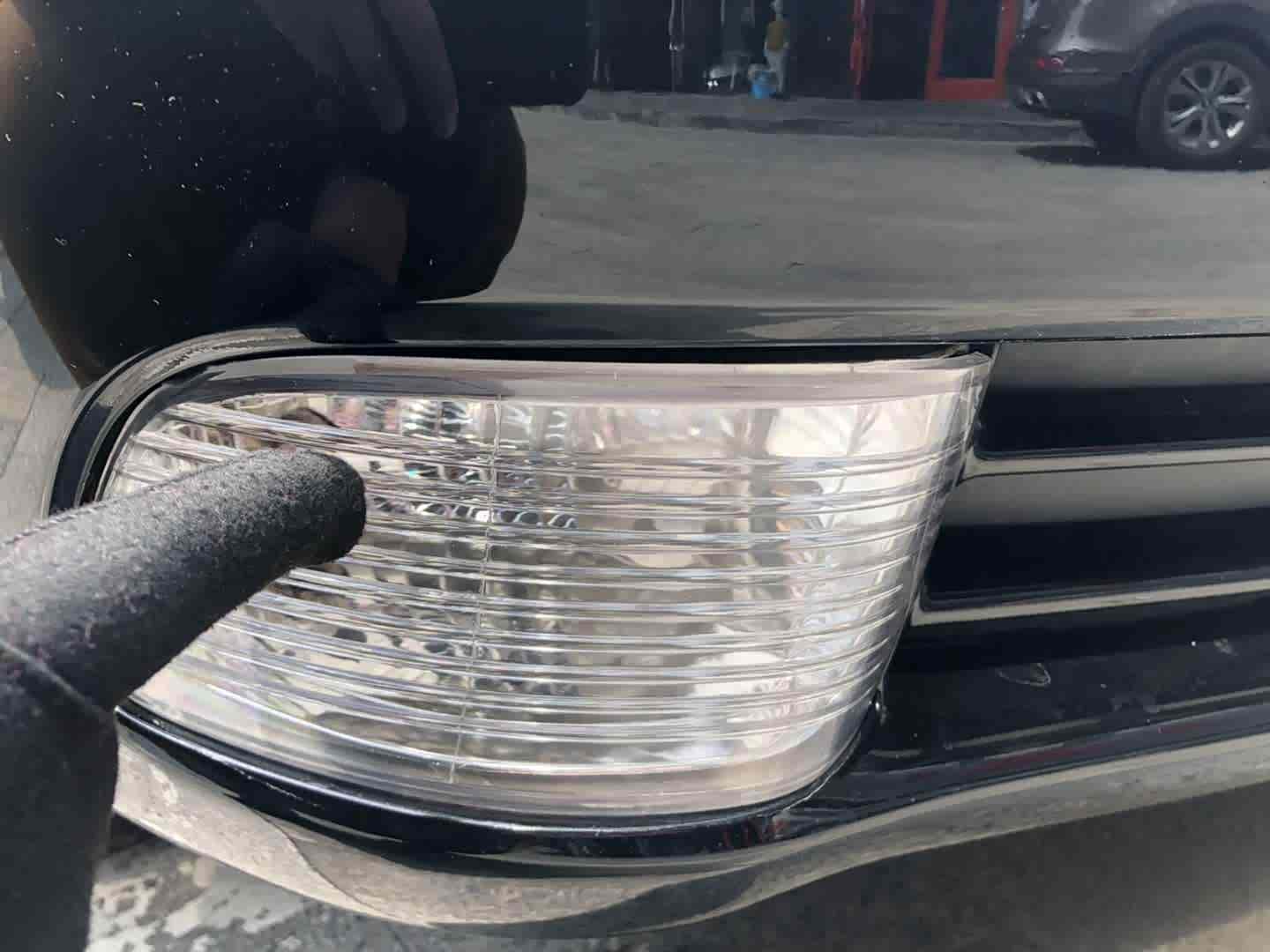 前后保险杠发现有拆卸喷漆痕迹,边缘缝隙处能看到有一些明显的飞漆,右前雾灯松旷,应该是拆卸保险杠维修后雾灯没有安装到位。
