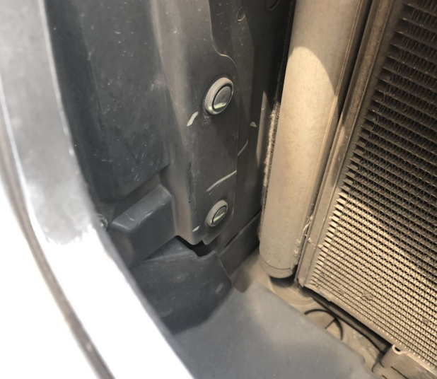 水箱框架没有检测到变形钣金等修复痕迹,饰板卡扣的原厂标识没被破坏,前防撞钢梁固定螺丝没有拆卸拧动痕迹。