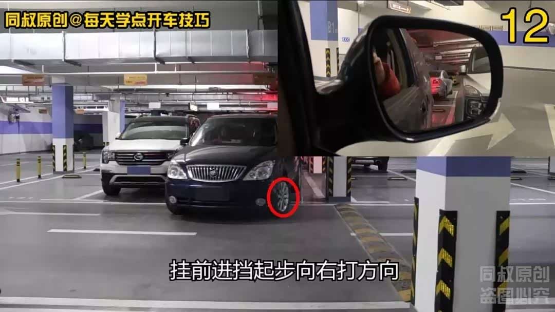 挂前进挡起步向右稍微打一点方向,来进一步扩大左侧车身与柱子距离,