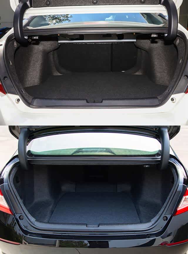 在后备箱空间方面,两款车的大小和开口造型也基本相当,雅阁在容积上要更大一些,进深也更长,拉的行李更多,也能拉下更大的行李。但是低配雅阁只支持后排座椅的整体放倒,在后排乘坐和储物空间上只能二选其一,而思域的比例放倒则更加实用。