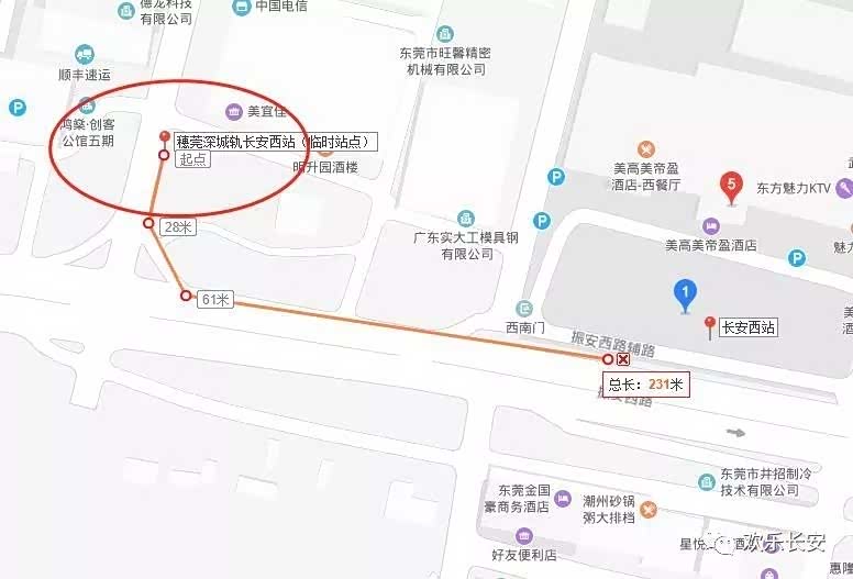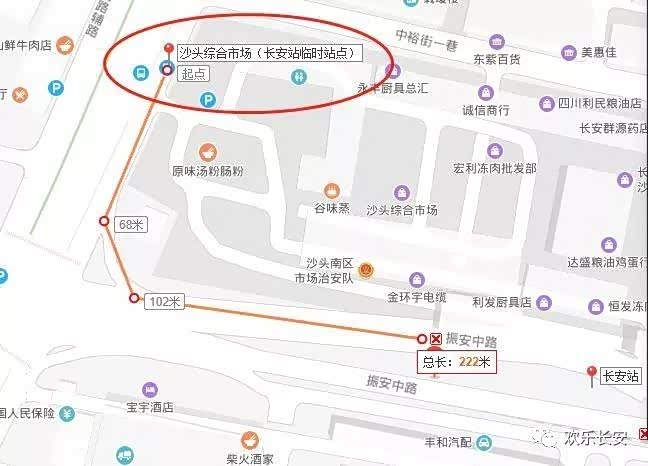 282路按批复起始站为上角加油站,因振安路施工,目前起始站临时调整为振安科技园,该站点距离长安西站约700米,可接驳城轨长安西站。