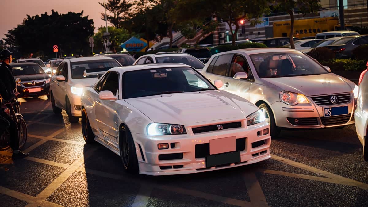 通勤高峰期的交通堵塞,似乎早已司空见惯。对于车迷来说,塞在路上时四周搜寻有意思的改装车,便成了消遣之一。在这时,如果你看到前方停着一台日产R34 Skyline GT-R,会作何感想?