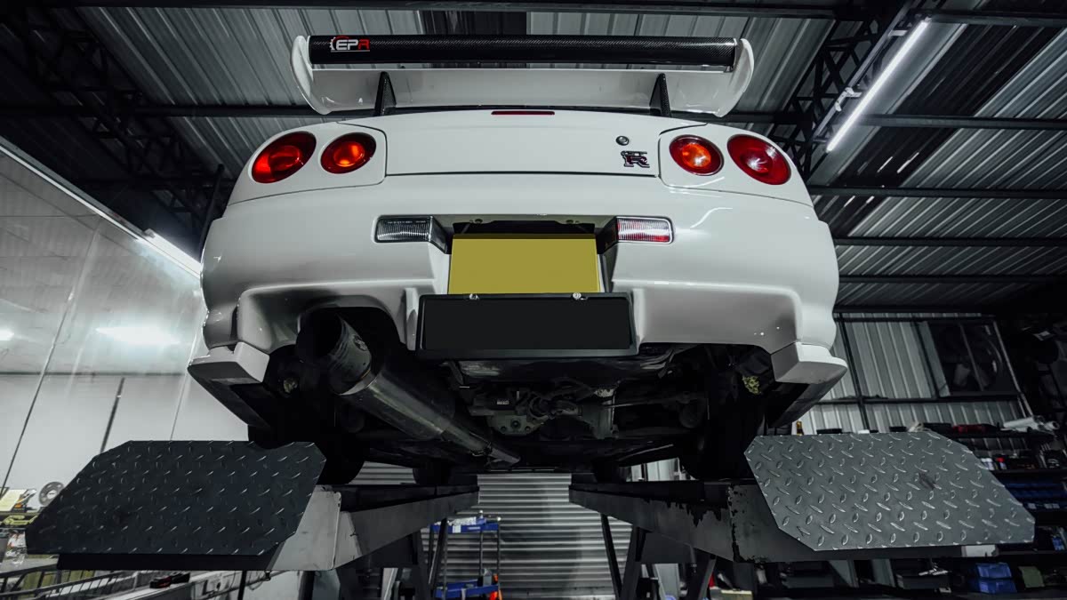为了全方面地了解它,我们还特地将Jeff的R34举起来欣赏底盘。不过由于光线太暗同时未进行清洗,并没有留下太多底盘照片。但通过观察可得知,底盘干爽无油渍,各部件也状况良好,别忘了这可是有着十几年车龄的R34.