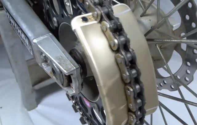 在熄火状态下,挂入空挡用手进行拨动,检查链条是否顺滑,有无齿轮变形的情况发生,检查链条松紧程度,有的摩托车,比如本田CBR650F,后摇臂的尾端,链条松紧调节处有检查贴纸,若到达红色区域,代表链条不能在调整了,需要更换链条。